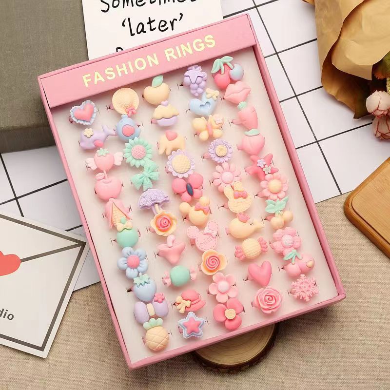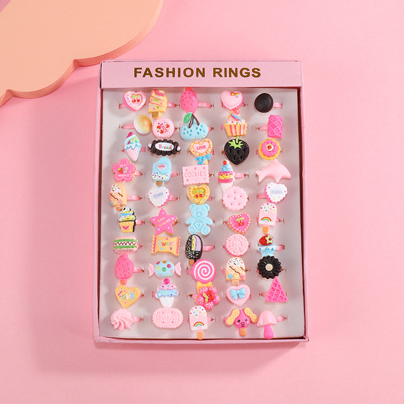 Children’s Ring Female Cartoon Jewelry Princess Ring Resin Toy Set Kindergarten Little Gift Girl Handwear