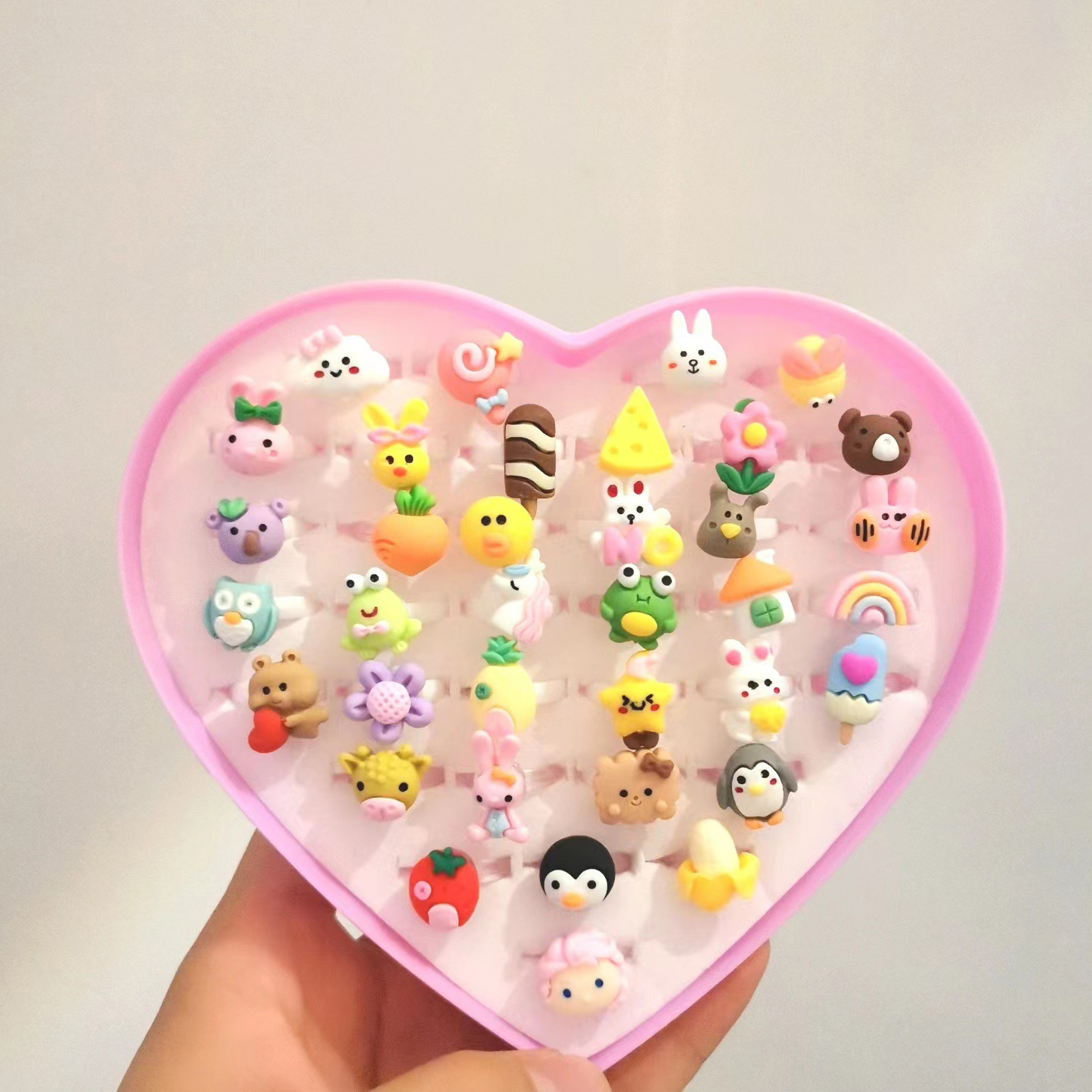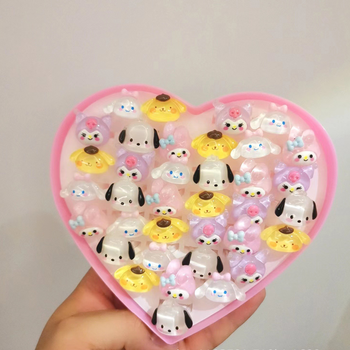 Frosted love box (36pc random), Clear love box (36pcs random), Frosted (50pcs random), Clear (50pcs random), Frosted kitten box (12 random), Clear kitten box (12 random), Brilliant (36pcs random), Shiny box (50 pcs random), Luminous love box (36pc random, Christmas model (50pcs random), Luminous (50pcs random), Sanrio(36pc random), Sanrio(50pc random), M bean peach box (36 random), M bean rectangular (50 random), Bear star(50 random), Cartoon fruit(50 random), Cartoon plant(50 random), Cartoon dumpling50 random)